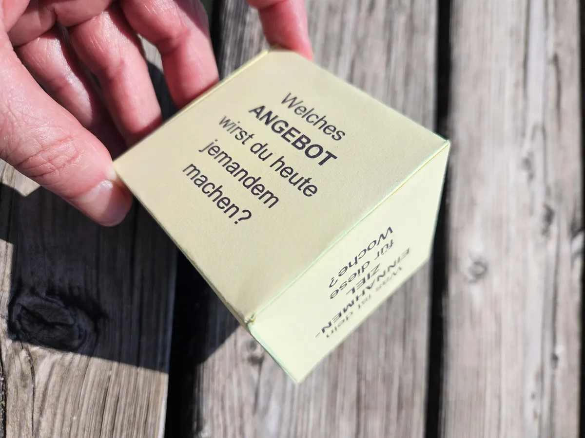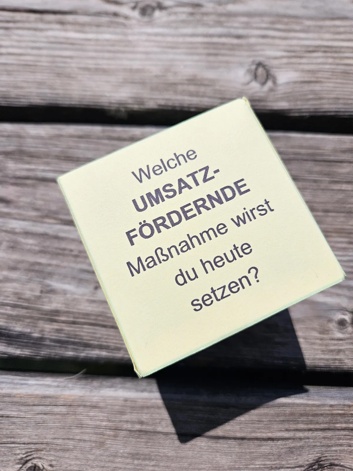 Mit dem Money Maker Würfel, deinem persönlichen Mini-Umsatzcoach, startest du jeden Arbeitstag spielerisch, fokussierst dich auf umsatzförderliche Handlungen – und verbesserst dabei ganz nebenbei dein Money Mindset.